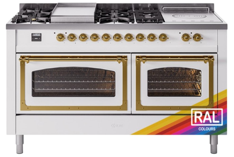 Introducing the new Nostalgie II 60" dual fuel range, a classic addition with a touch of innovation to any kitchen. This range feature sealed burners equipped with total black brass burner that has a non-stick nanotechnological coating, heavy cast iron grates, 3.5 + 2.3 cu. ft. dual oven capacity and soft closing door system.Read More