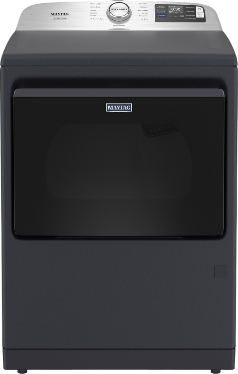 The Maytag® pet pro dryer traps and removes loads of pet hair from clothes. The pet pro option lifts and captures pet hair from clothes and traps it in the lint trap. Extra power boosts drying power to get thick fabrics drier the first time, while advanced moisture sensing helps evenly dry loads. Harness the power of steam to help prevent wrinkles and refresh clothes with a steam-enhanced dryer. In the never-ending fight against pet hair, Maytag® dryer is ready to conquer pet hair like a pro.Read More